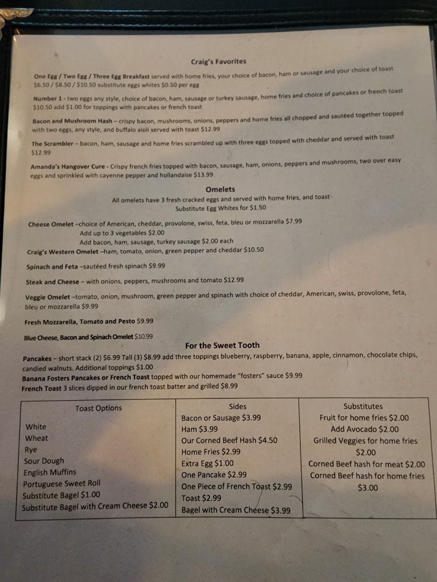 Welcome to Craig's Cafe, a charming breakfast spot located at 1354 Hancock St, Quincy, MA. Known for its friendly atmosphere and delicious offerings, Craig’s Cafe serves as a vibrant community hub. You can expect a delightful menu featuring standout items like the Crab Cake Benny and the mouthwatering Filet and Eggs, both praised for their unique flavor profiles.
